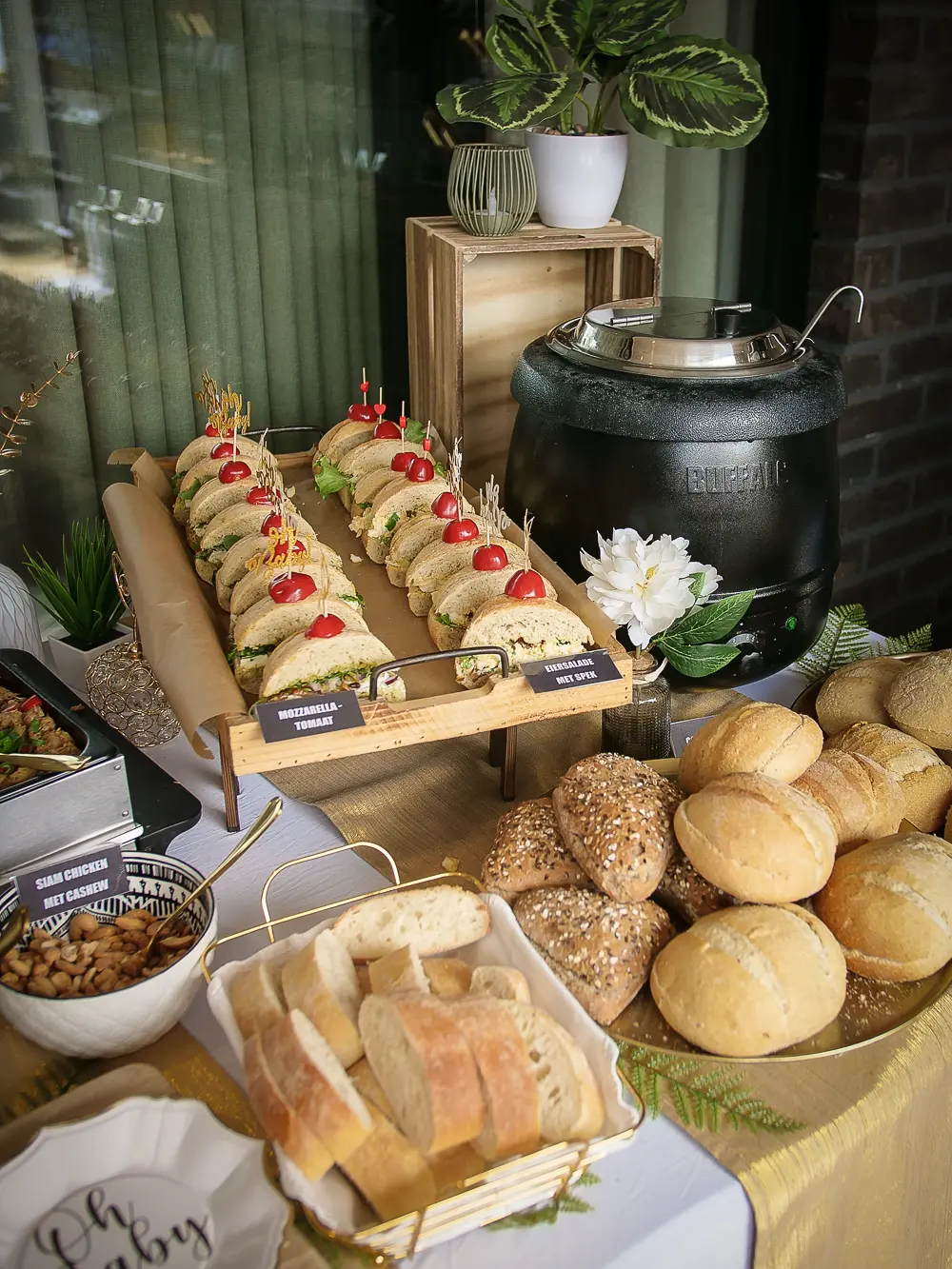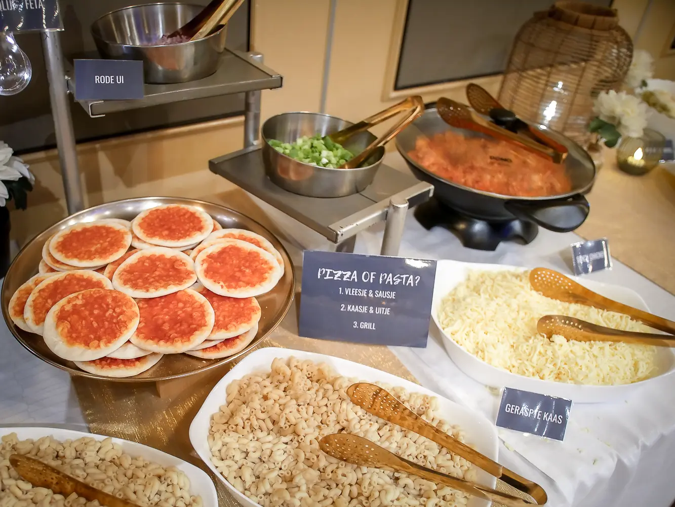 - incl. 8 soorten toppings, 3 sauzen, brood en salades.